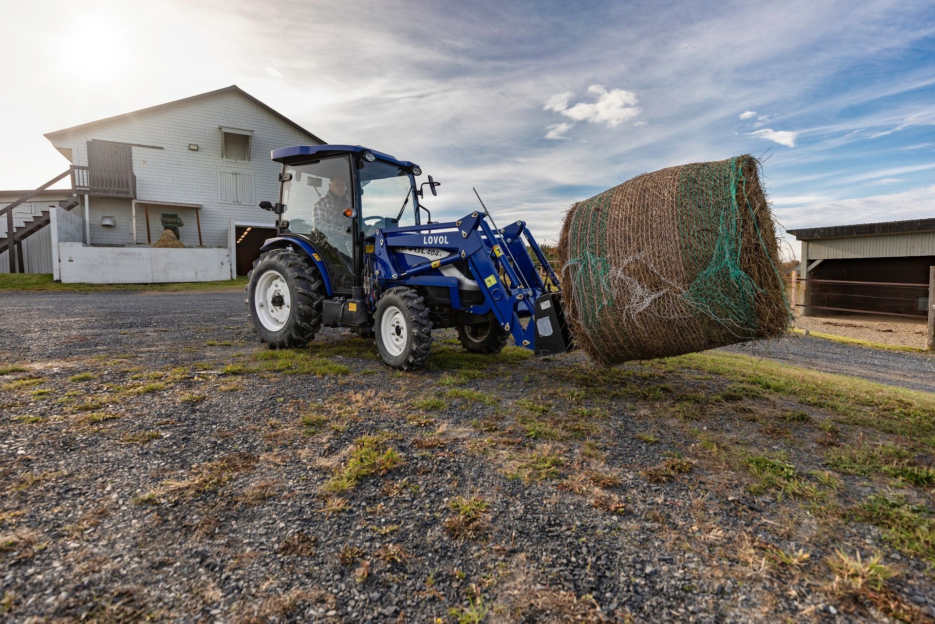 De son côté, le M504 PRO (avec son chargeur frontal équipé d'une pince-grappin pour la manipulation de matériaux, comme illustré), symbolise la montée en gamme de la marque. Il offre aux professionnels de l'agriculture une solution plus puissante, alliant confort de cabine et capacités de levage accrues pour des tâches plus lourdes.